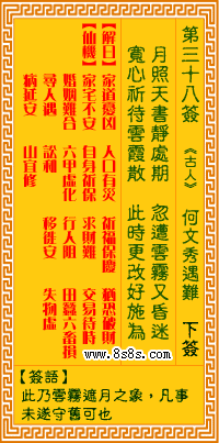 詩意:此卦雲霧遮月之象 凡事未遂守舊也