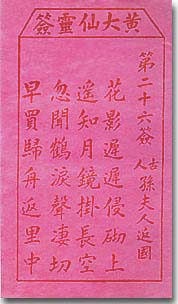 徐庶,三國時代一個傑出的政治家、軍事家,與孔明是好朋友。本來,徐庶是有心輔佐劉備建立帝業的,但曹操卻利用徐庶母親來「打人質牌」,使徐庶改變初衷,返回家鄉,落入曹操手中。徐庶離開劉備時,走馬薦諸葛,極力推崇孔明。徐庶歸家後,被徐母大罵他上了曹操的當。孝義兩難存,徐庶在曹操手下做官,始終是「身在曹營心在漢」。此簽是描述徐庶被曹操放假後,思念母親,歸家心切之情。