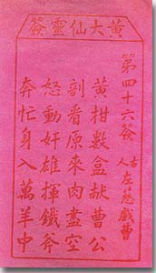 左慈是三國時代,一位傳奇人物,曾多次運用法術,戲弄曹操,令這個已患有頭痛痼疾的一代奸雄,更加頭痛。但左慈最後亦被曹操追殺,不知所終。簽中所舉的只是左慈戲曹操的其中一個例子:他把幾盒外表金黃的極品柑果獻給曹操,但用刀切開來一看,內裡卻是空空如也的。激怒了奸雄曹操要把他追殺,他連忙混在羊群中逃走。