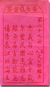 韓愈,雖因直言而被皇帝貶官潮州,但因文、德、政各方面都有很大的貢獻,後被尊為文公。韓文公在潮州為官,勤政廉潔,為國為民,當時潮洲沿海一帶常有鱷魚出沒,威脅人畜的生命,韓愈寫了一篇「祭鱷魚文」,虔誠祭之,並限日鱷魚遷徙,結果,奇跡出現,從此不再見有鱷魚出現。求得此簽者,凡事心誠志堅,定可逢凶化吉--韓文公在潮州為官十年,心存忠義,令當地人民安居樂業,誠心禱告之後,連惡毒的鱷魚也平息。
