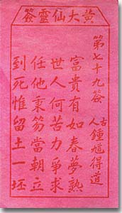 張良,祖先五代為韓國丞相,後秦亡韓,張良結交刺客,在博浪水狙擊秦王而未果,逃亡江蘇,遇黃石公,得傳「太公兵法」,後助劉邦建立漢朝,封「留候」。此簽系張良在拜相封候之後,領悟到人生如夢,富貴名利像過眼雲煙。富貴,好像春夢一場,世人又何苦費力去追求呢?即使爭得到,手托朝笏,站在天子殿下,他日死時,還不是留下一堆黃土?