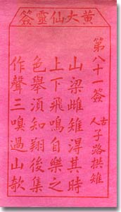 因孔子被尊為「至聖」,這只雌雉在孔子面前歌舞,亦被稱為「朝聖」。按照簽意,是有一番好景的,但凡事都要知機,間中可能會出現危機時,要知道避忌。