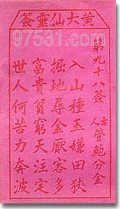 中平 管鮑分金 第九十八簽