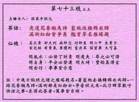 黃大仙靈簽第七十三簽:孫霖中狀元 (上上靈簽)