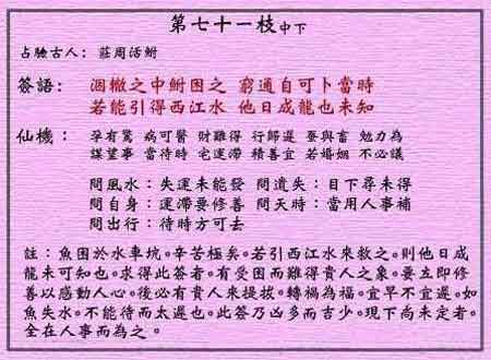黃大仙靈簽第七十一簽釋義: