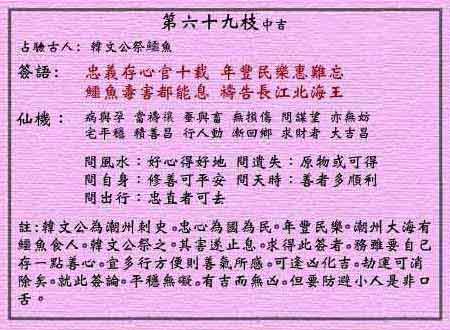 黃大仙靈簽第六十九簽:韓文公祭鱷魚 (中吉靈簽)