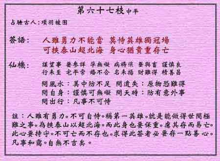 黃大仙靈簽第六十七簽:李元霸稱雄 (中平靈簽)