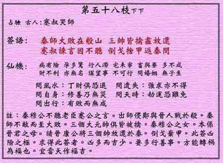黃大仙靈簽第五十八簽:蹇叔哭師 (下下靈簽)