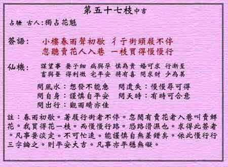 黃大仙靈簽第五十七簽:獨佔花魁 (中吉靈簽)