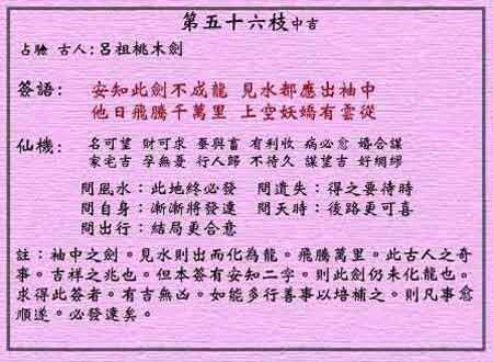 黃大仙靈簽第五十六簽:呂祖桃木劍 (中吉靈簽)