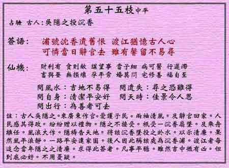 黃大仙靈簽第五十五簽:吳隱之投沉香 (中平靈簽)