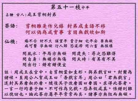 黃大仙靈簽第五十一簽:成王剪桐封第 (中平靈簽)
