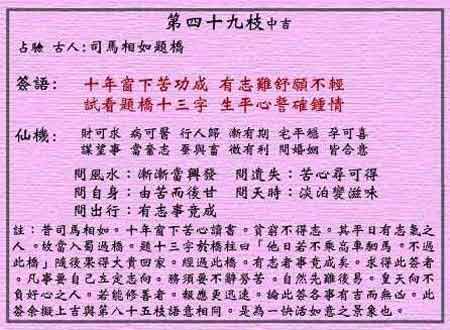 黃大仙靈簽第四十九簽:司馬相如題橋 (中吉靈簽)