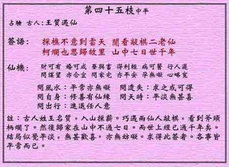 黃大仙靈簽第四十五簽:王質遇仙 (中平靈簽)