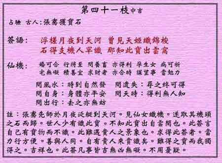 黃大仙靈簽第四十一簽:張騫獲寶石 (中吉靈簽)