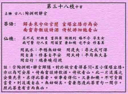 黃大仙靈簽第三十八簽:陶淵明辭官 (中吉靈簽)