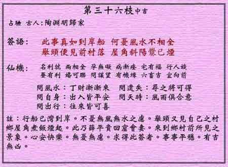 黃大仙靈簽第三十六簽:薛平貴歸家 (中吉靈簽)