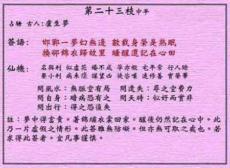 黃大仙靈簽第二十三簽:盧生夢 (中平靈簽)