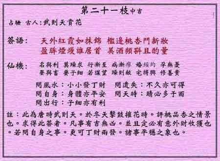 黃大仙靈簽第二十一簽:武則天賞花 (中吉靈簽)