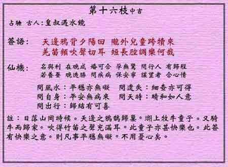 黃大仙靈簽第十六簽:皇叔遇水鏡 (中吉靈簽)