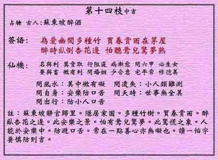 黃大仙靈簽第十四簽:蘇東坡醉酒 (中吉靈簽)