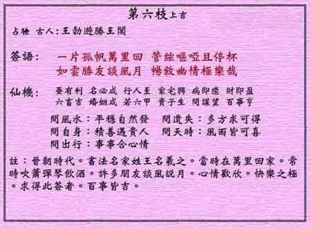 黃大仙靈簽第六簽:王羲之歸故里 (上吉靈簽)