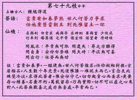 黃大仙靈簽第七十九簽仙機: