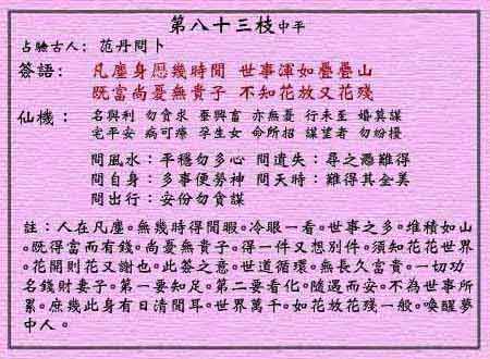 黃大仙靈簽第八十三簽解說及記載: