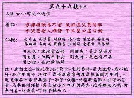 黃大仙靈簽第九十九簽:韓文公遇害 (中平靈簽)