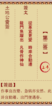 當前的位置:三藏算命網 - 算命大全 - 土地公公靈簽 - 土地公靈簽解籤 第二簽