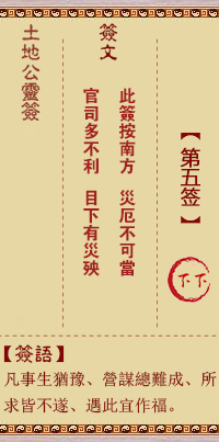 此簽按南方,災厄不可當,官司多不利,目下有災殃。