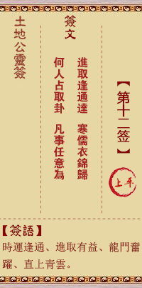 土地公靈簽 第12簽 上平