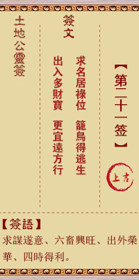 三藏算命 土地公靈簽解籤 第二十一簽 © 2005 - 2026 版權所有