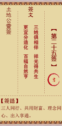 三藏算命 土地公靈簽解籤 第二十五簽 © 2005 - 2026 版權所有