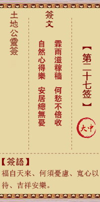 土地公靈簽 第27簽 大吉