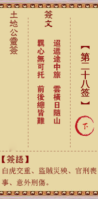 三藏算命 土地公靈簽解籤 第二十八簽 © 2005 - 2026 版權所有