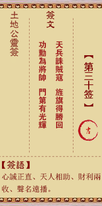 當前的位置:三藏算命網 - 算命大全 - 土地公公靈簽 - 土地公靈簽解籤 第三十簽