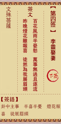 當前的位置:三藏算命網 - 算命大全 - 文殊菩薩靈簽 - 文殊菩薩靈簽解籤 第四簽