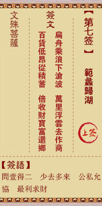 當前的位置:三藏算命網 - 算命大全 - 文殊菩薩靈簽 - 文殊菩薩靈簽解籤 第七簽