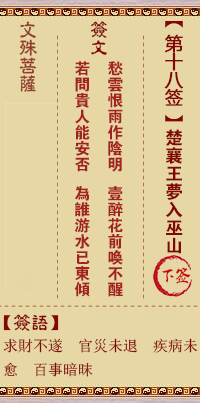籤詩:愁雲恨雨作陰明,一醉花前喚不醒,若問貴人能安否,為誰游水已東傾。