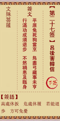 文殊菩薩靈簽第27簽解籤 文殊菩薩靈簽第二十七簽 下簽