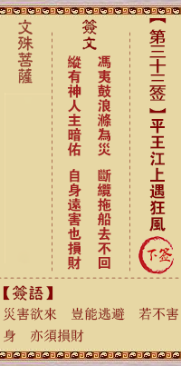 文殊菩薩靈簽第33簽解籤 下簽