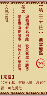 籤詩:淚眼相看忍別離,秋風起處不勝悲,拋家萍蕩夜闌事,財散人亡總一時。
