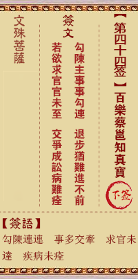 文殊菩薩靈簽第44簽解籤 下簽