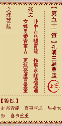 當前的位置:三藏算命網 - 算命大全 - 文殊菩薩靈簽 - 文殊菩薩靈簽解籤 第五十三簽