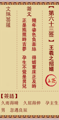文殊菩薩靈簽第63簽解籤 上簽