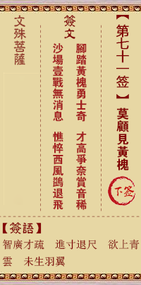 當前的位置:三藏算命網 - 算命大全 - 文殊菩薩靈簽 - 文殊菩薩靈簽解籤 第七十一簽