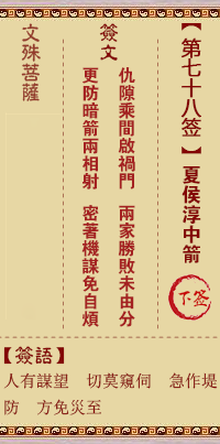 當前的位置:三藏算命網 - 算命大全 - 文殊菩薩靈簽 - 文殊菩薩靈簽解籤 第七十八簽