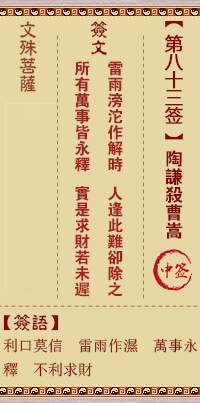 當前的位置:三藏算命網 - 算命大全 - 文殊菩薩靈簽 - 文殊菩薩靈簽解籤 第八十三簽