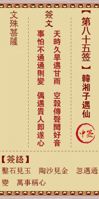 籤詩:天時久旱遇甘雨,空谷傳聲聞好音,事怕不通通則變,偶遇貴人即遂心。